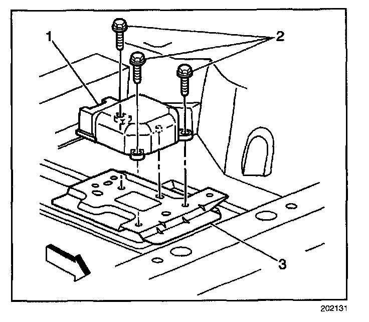3. Point the arrow on the SDM toward the front of the vehicle.