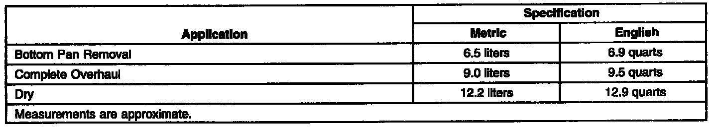 Fluid Capacity Specifications: