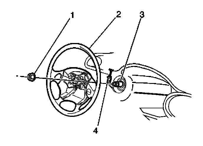 1. Install the steering wheel (2) to the column (3).