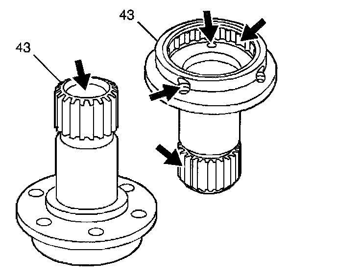 1. Inspect the drive sprocket support (43) for damage to the stator shaft splines, the journals, the bushings, and the roller bearing.
