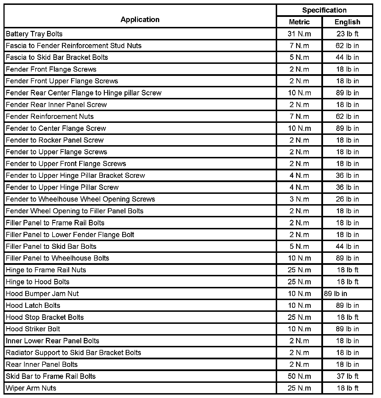 Fastener Tightening Specifications