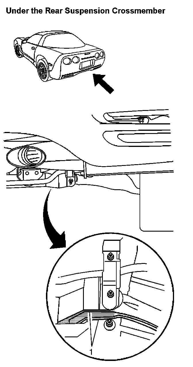 - Make sure the jack lift pad spans at least 2 suspension crossmember ribs (1).