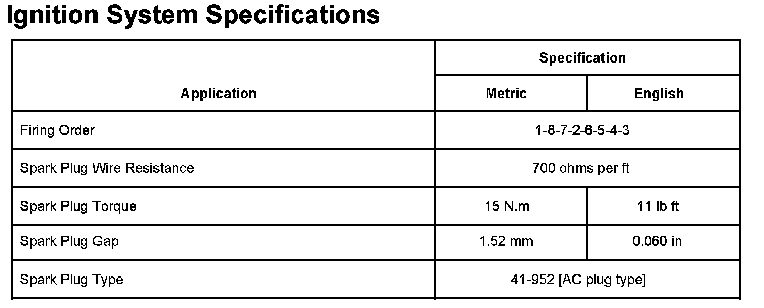 Ignition System Specifications: