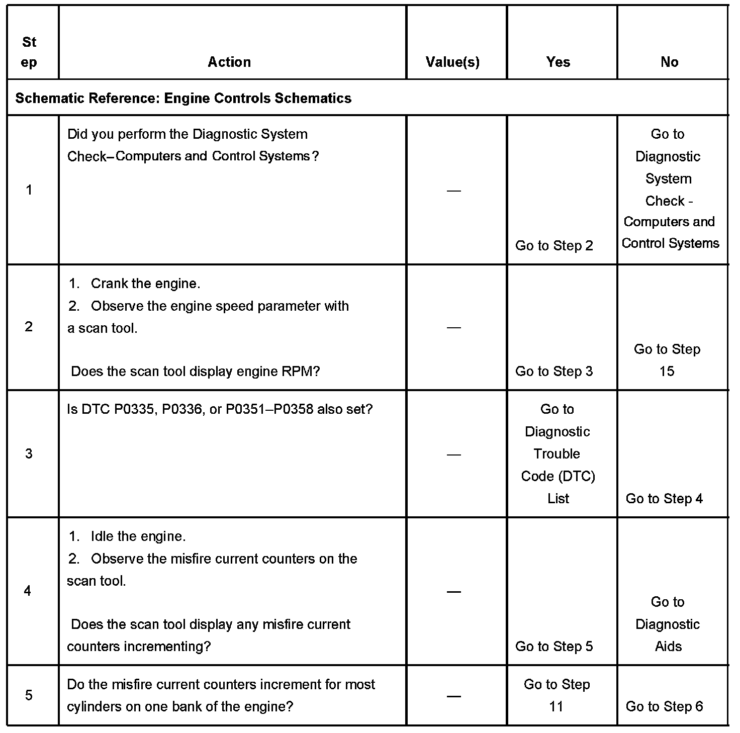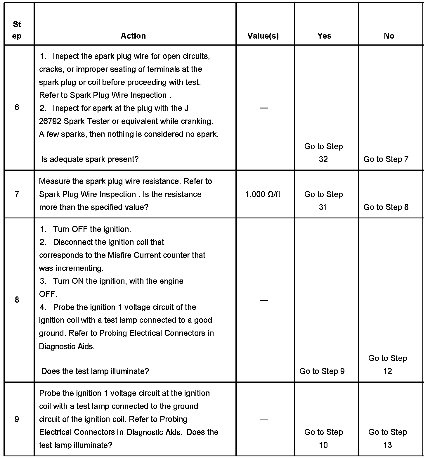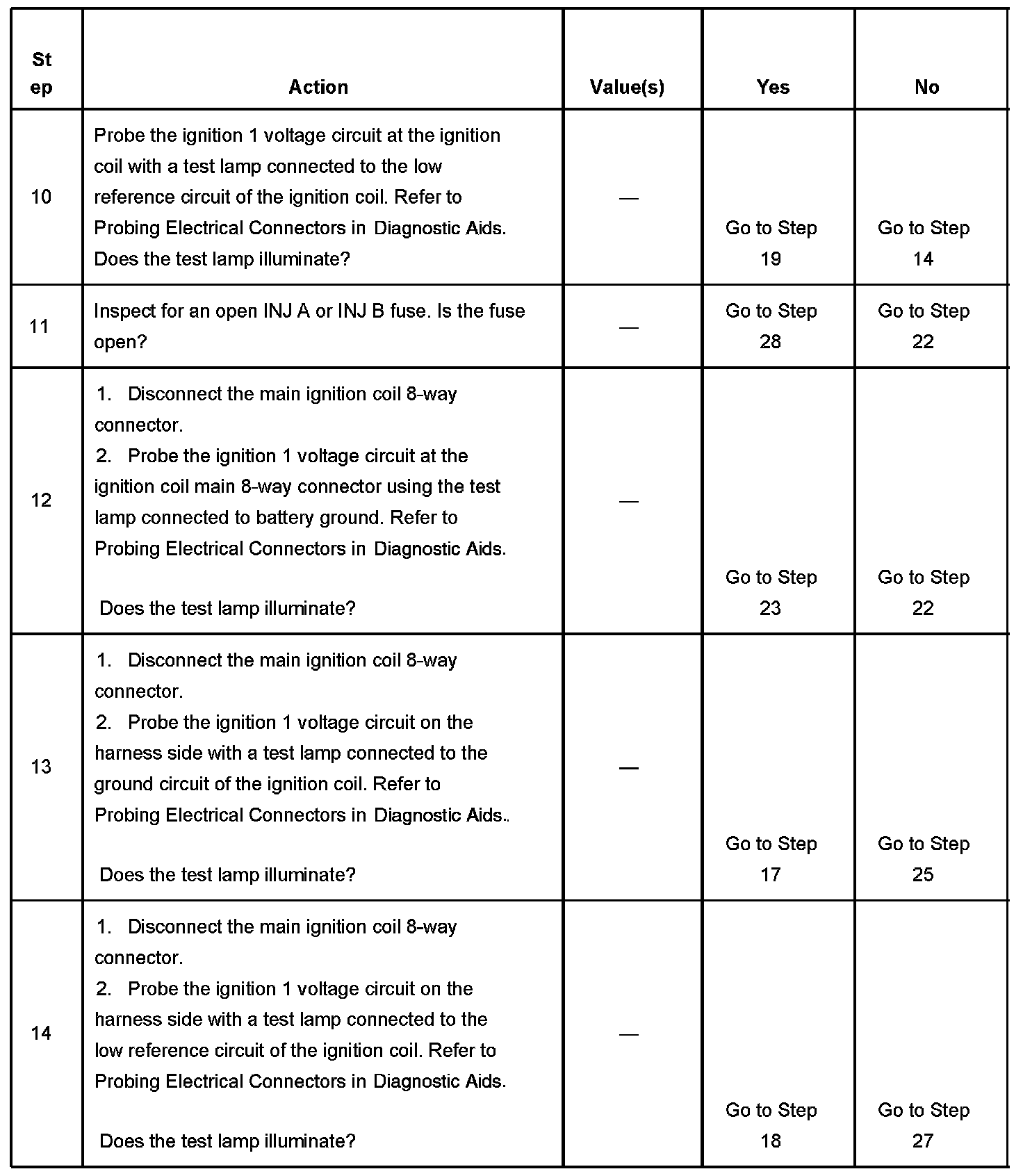 11. A good indication that the fuse is open is all off the misfire current counters are incrementing on one side of the engine. Inspect the ignition positive voltage circuit for a grounded circuit. If the fuse is open and the ignition coil circuits are OK, inspect the injector circuits for being grounded.