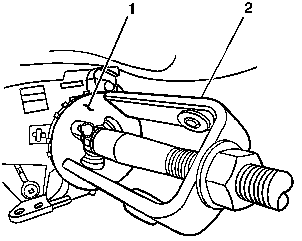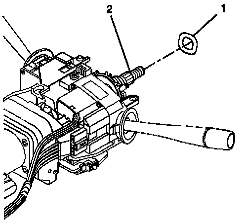6. Install the wave washer (1) onto the steering shaft assembly (2). Using the procedure below, perform a functional test of the ECL using the Tech 2 and EL47728 Electronic Column Lock Tester (for 1997 and 1998 models built before 5/26/98).