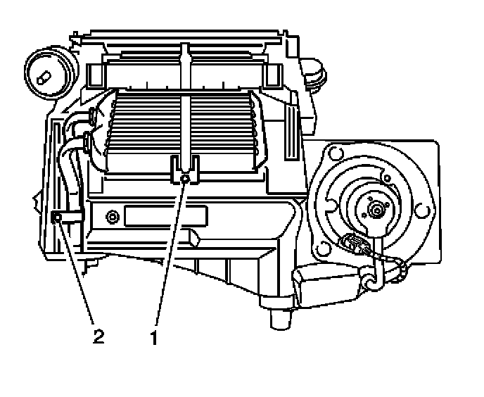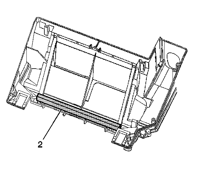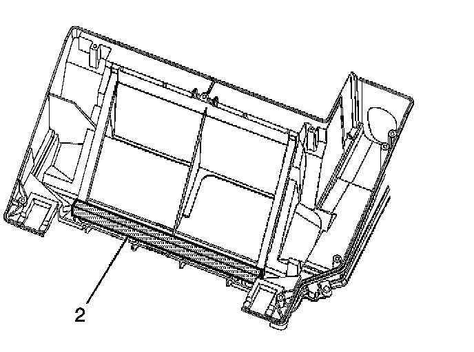 3. Install a new heater core upper seal (2) to the HVAC module case - lower.