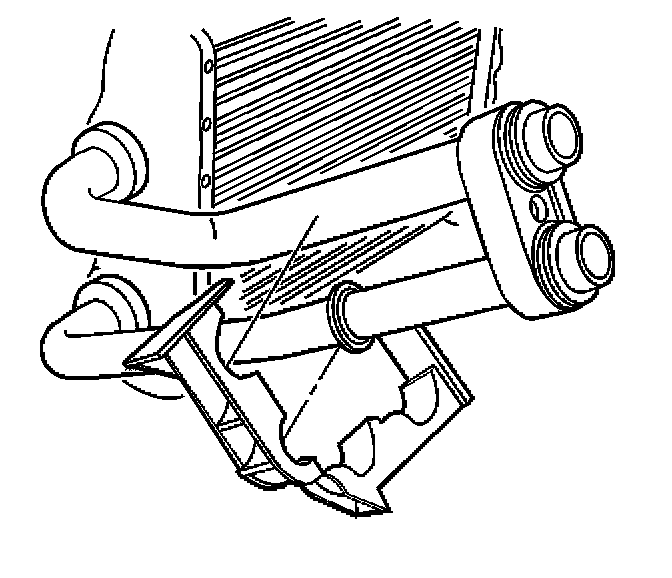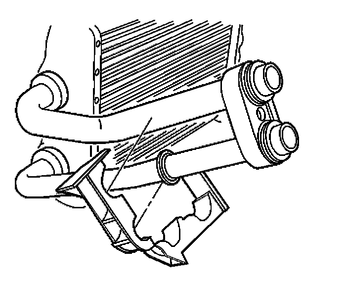 Align the depression in the clamp to the ridge on one of the heater core pipes, then close the clamp to secure.