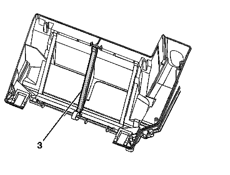 13. Remove and discard the heater core center seal (3) from the HVAC module case - lower.