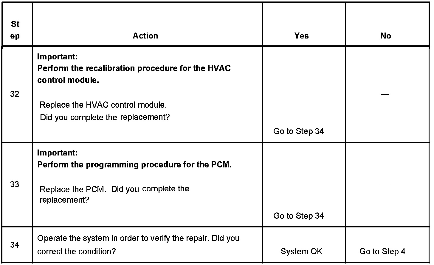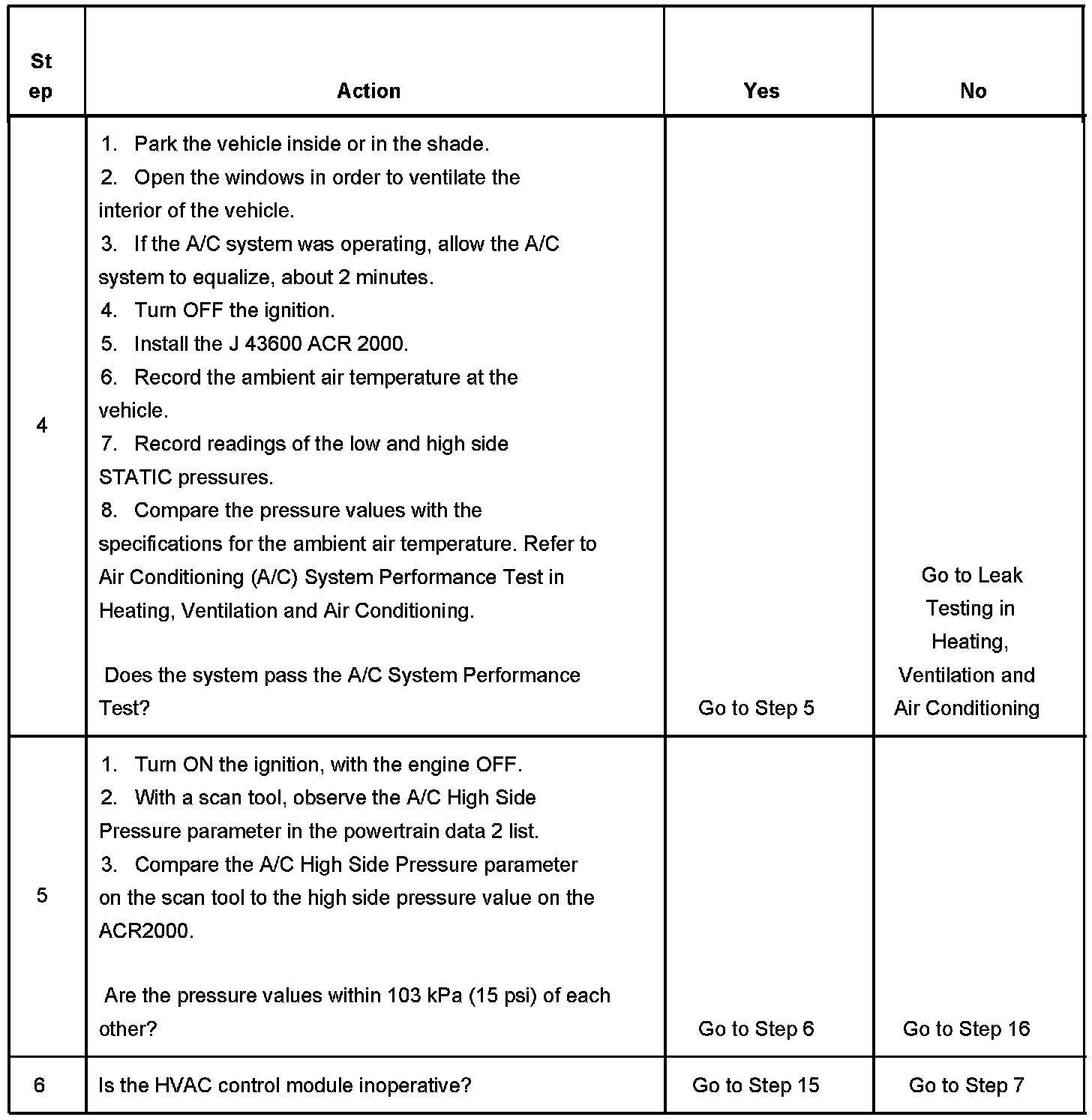 6. The HVAC control module is inoperative when the module does not respond to any operator control requests to enable the A/C compressor. The blower motor may still operate independent of the A/C controls.
