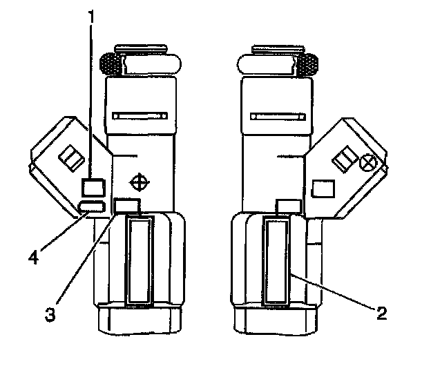 1. The fuel injector assembly is stamped with a part number identification (2), a manufacturing date (3), a week code (1), and a production plant number (4). Inspect the new injectors in order to ensure installation of the correct part.