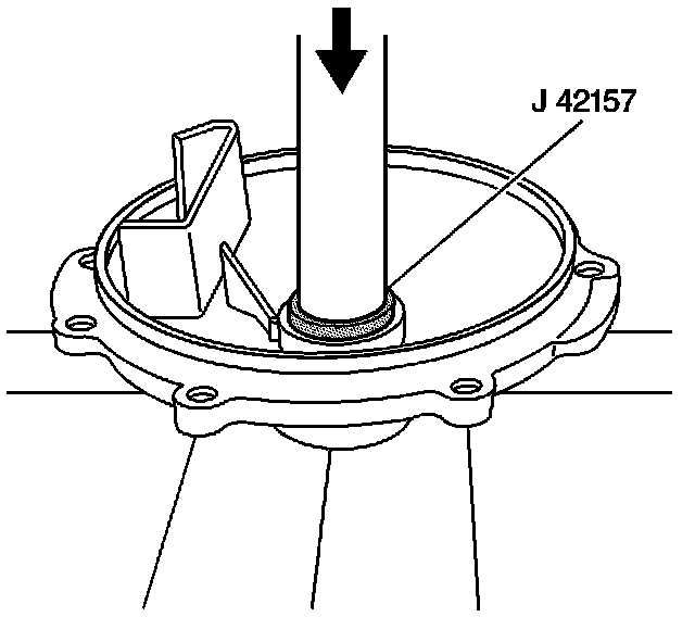3. Install the bearing into the cover - left using the J 42157 and a hydraulic press.