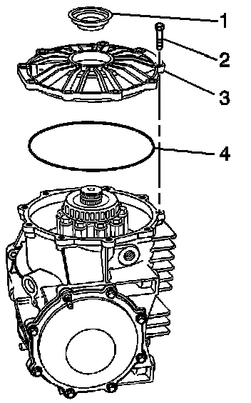 17. Install the cover - rear (2), bolts (3), bolt/stud (4), and 0-ring (1).