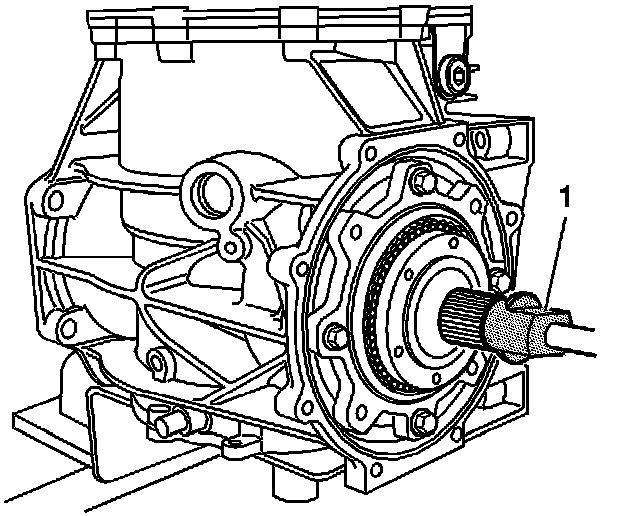 15. Install the J 42164 (1) into the splines of the pinion. J 42164 will retain the pinion in order to properly measure backlash.