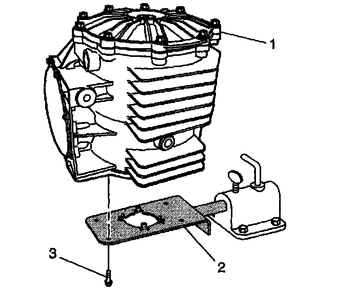 7. Install the pinion housing/cage assembly (1) into the differential housing.