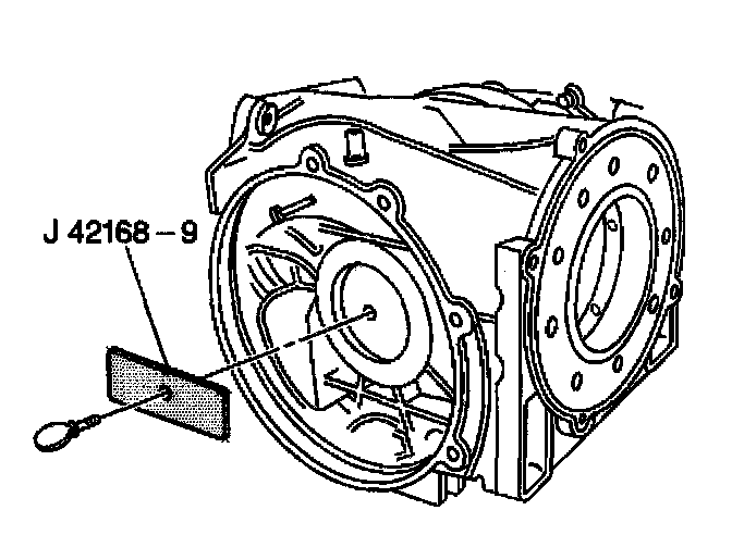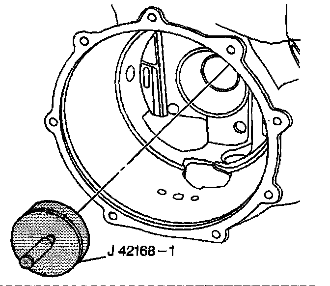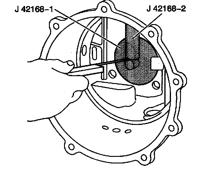 3. Install the J 42168-1 into the left bearing race bore of the differential housing.