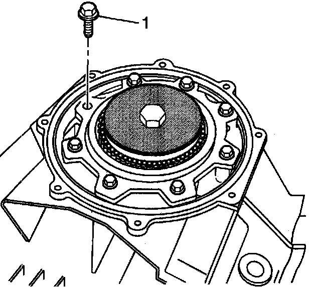 8. Install the pinion housing/cage bolts (1).