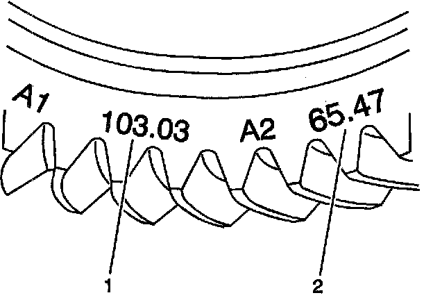 11. Locate the A1 value (1) on the side of the ring gear.