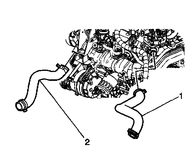 3. Install the radiator inlet hose (1) to the water outlet housing.