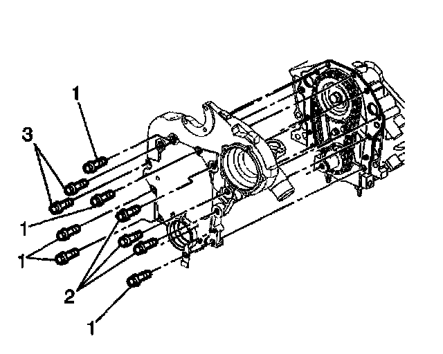 5. Install the engine front cover bolts (3).
