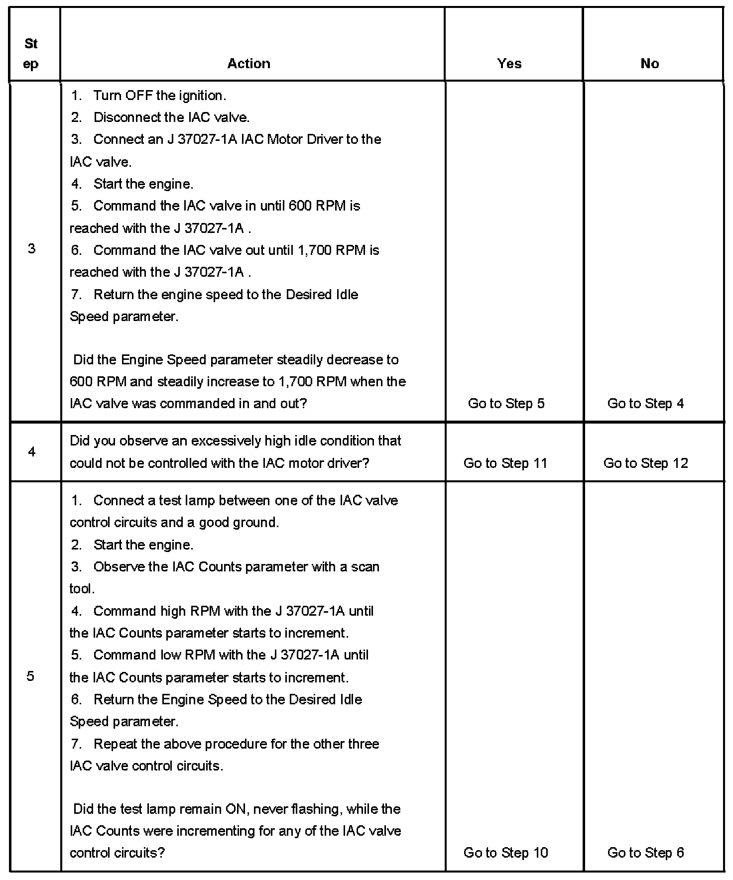 5. This test will determine the ability of the PCM and IAC valve control circuits to control the IAC valve.