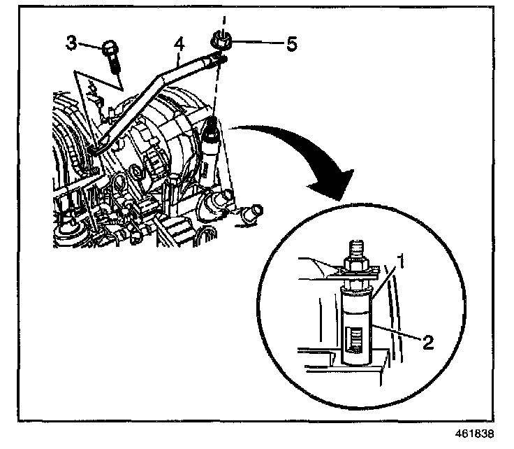 5. Remove the generator rear brace nut (5).