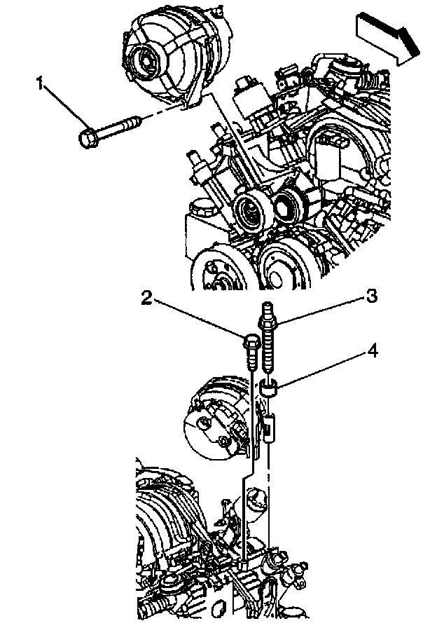4. Install the generator bolt (2) to the hole in generator, finger tight.
