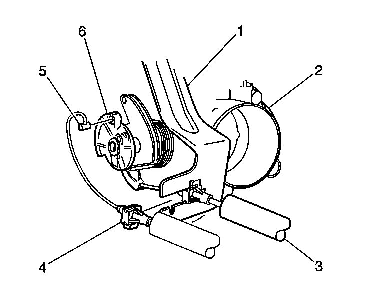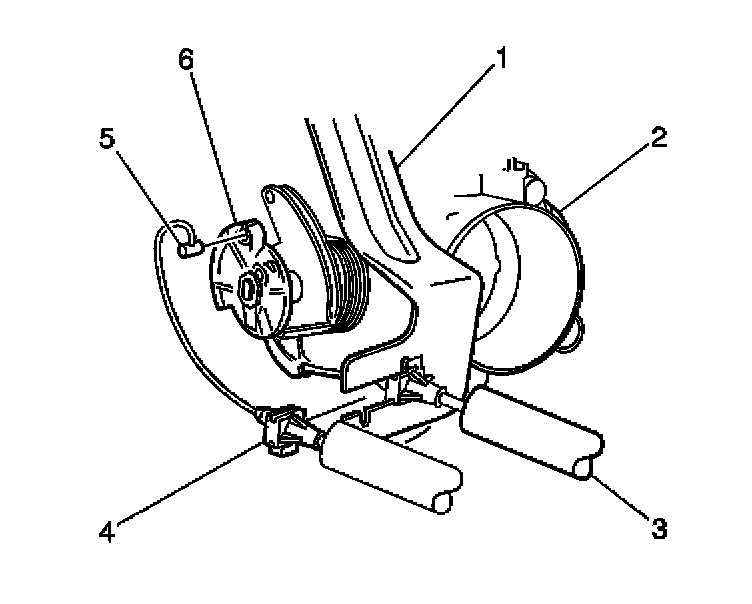 2. Disconnect the cruise control cable tab (5) from the throttle body cam (6). Rotate the cam (6)to 1/4 open throttle in order to release the tab (5).