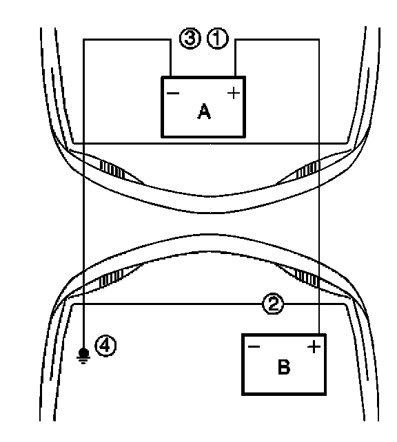 11. The black negative (-) cable must be first disconnected from the vehicle that was boosted (4).