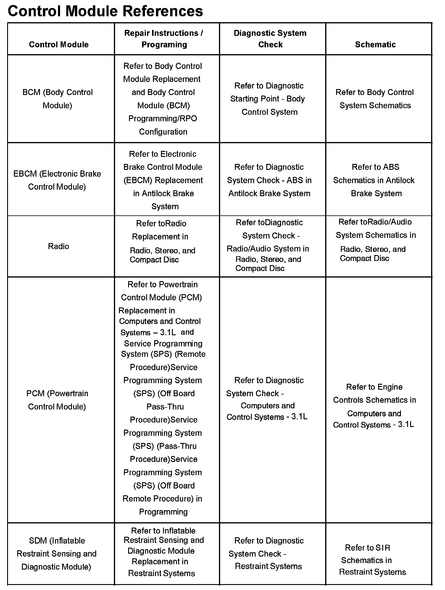 Control Module References