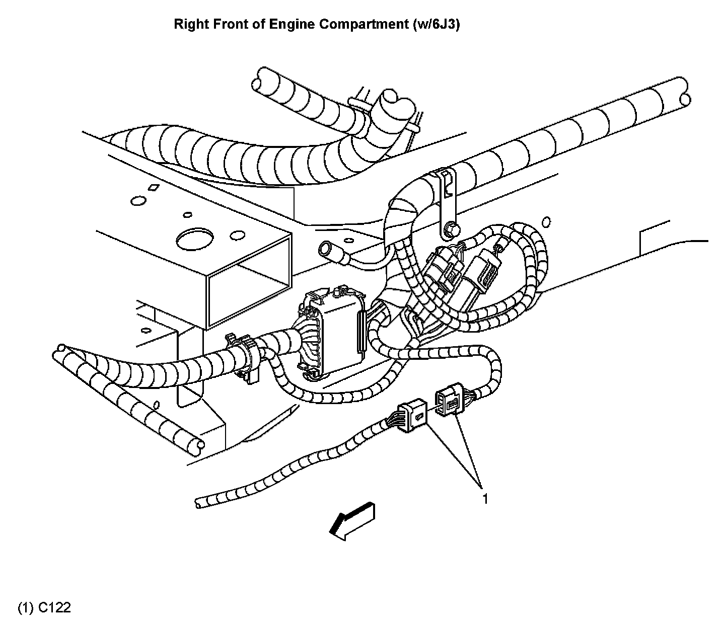 Right Front Of Engine Compartment (With RPO Code 6J3):