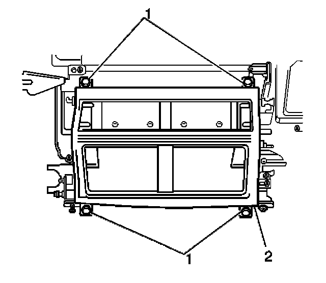 26. Remove the retaining screws (1) to the air distribution case cover.