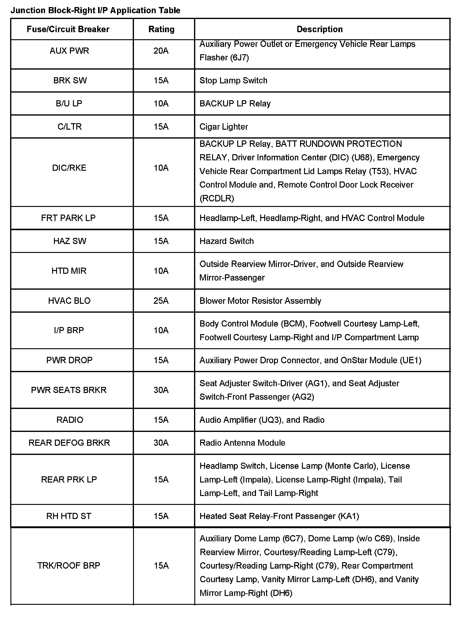 Right I/P - Junction Block