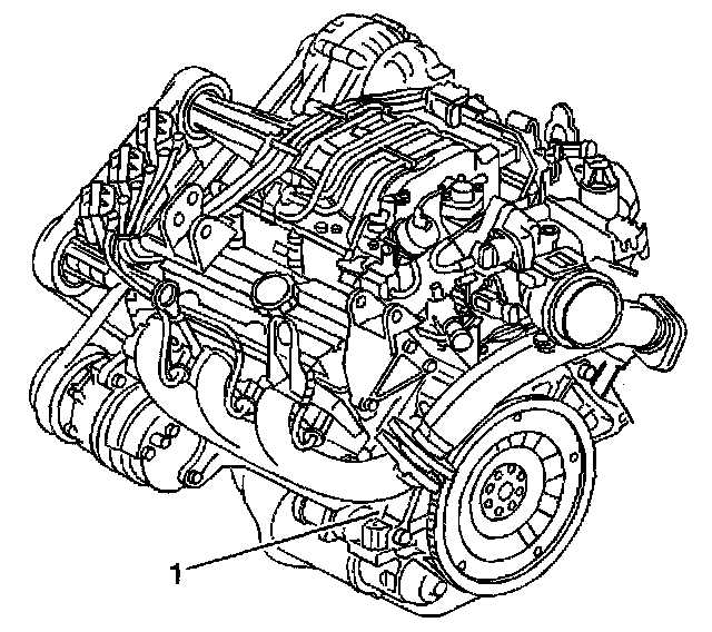 Engine IdentificationThe primary Vehicle Identification Number - VIN derivative for the 3800 - L36 and 3800 - L67 is stamped or laser etched on the left side of the engine block above the starter motor (1).