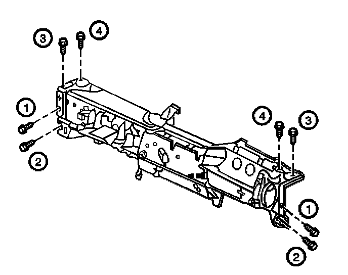25. Remove the bolts from the HVAC module center support.