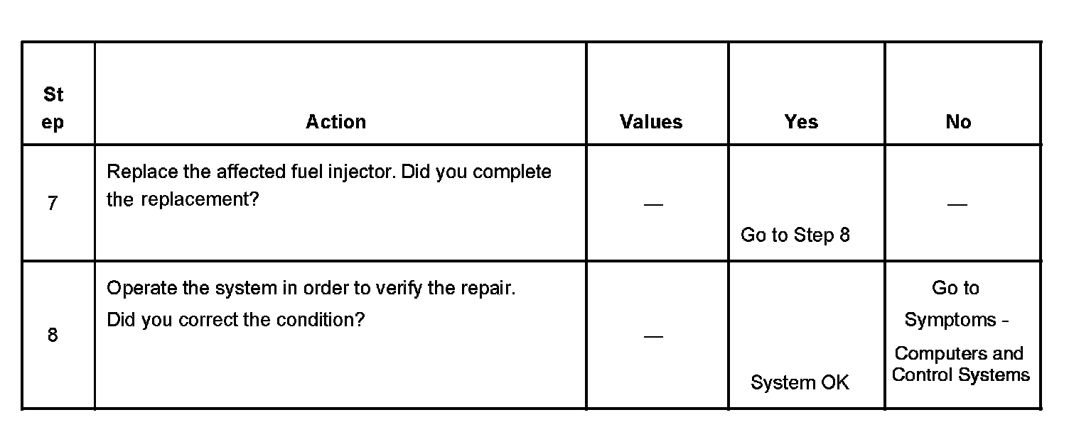 The numbers below refer to the step numbers on the diagnostic table.