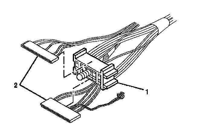 6. Slide the 2 connectors (2) of the turn signal and multifunction switch assembly out of the bulkhead connector (1).