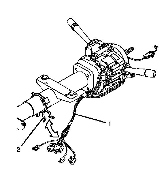 1. Install the turn signal and multifunction switch assembly (2) onto the steering column tilt head assembly.