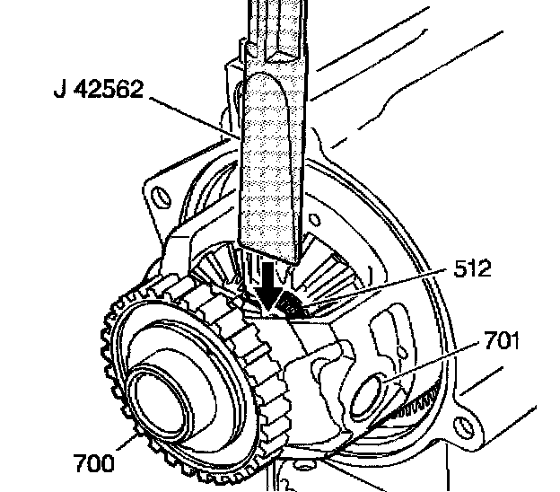 4. Place the J 42562 between the end of the output shaft and the differential pinion shaft.