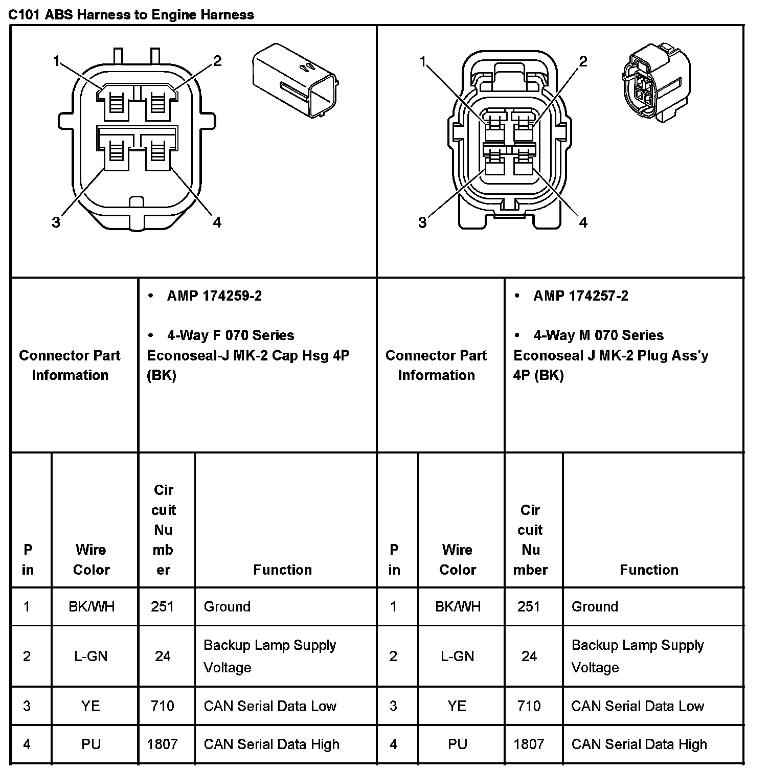 C101 ABS Harness To Engine Harness: