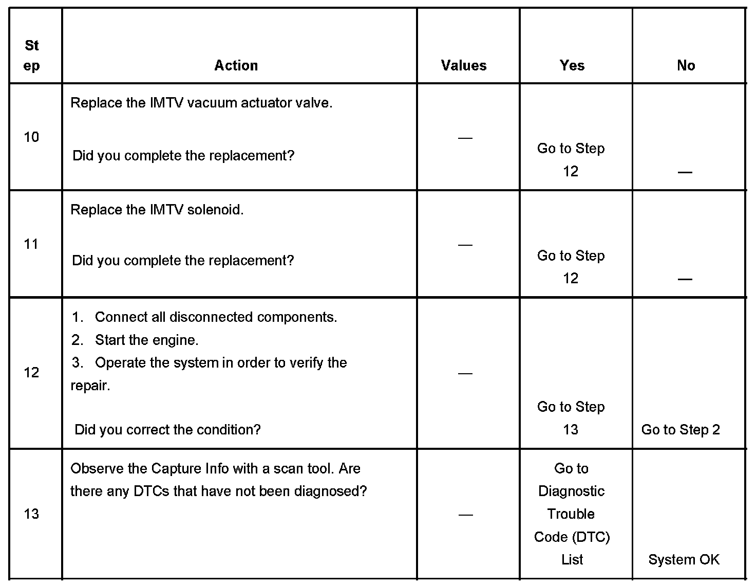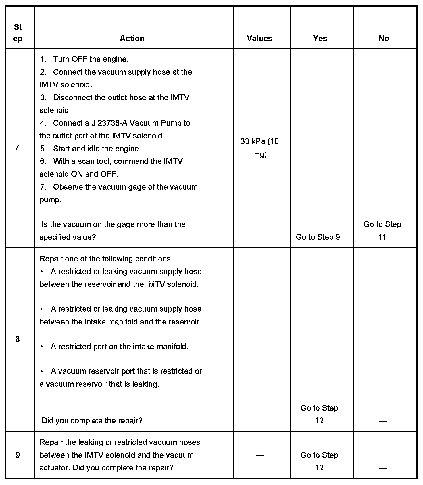 7. This step test for a faulty IMTV solenoid. If the IMTV solenoid is commanded On, there should be vacuum at the vacuum actuator. If the IMTV solenoid is commanded OFF, there should be no vacuum at the vacuum actuator.