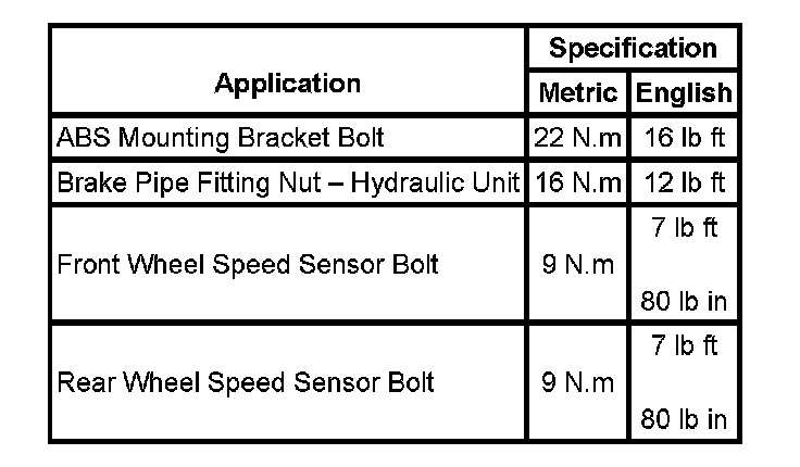 Fastener Tightening Specifications: