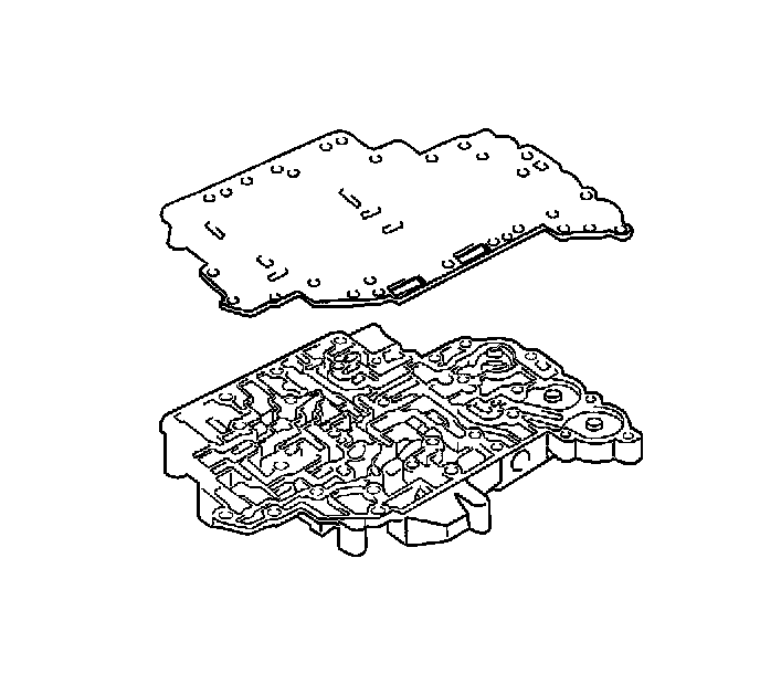 7. Install the 2 gaskets, the plate, and the lower valve body cover.