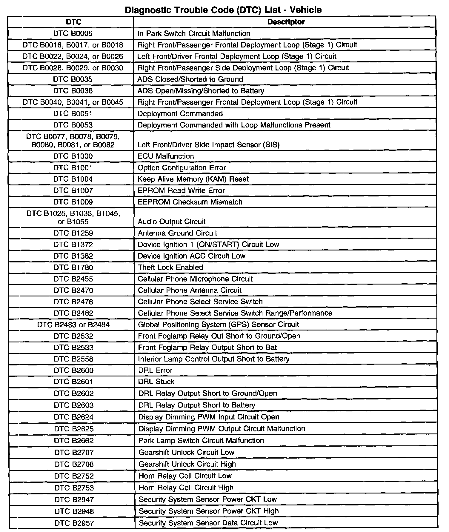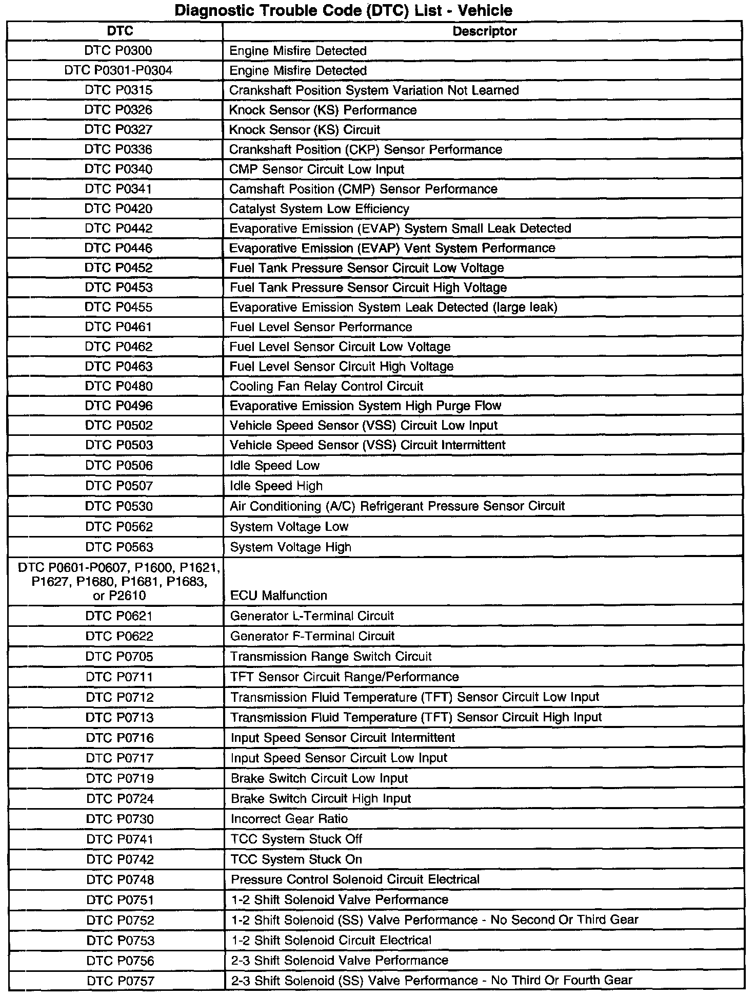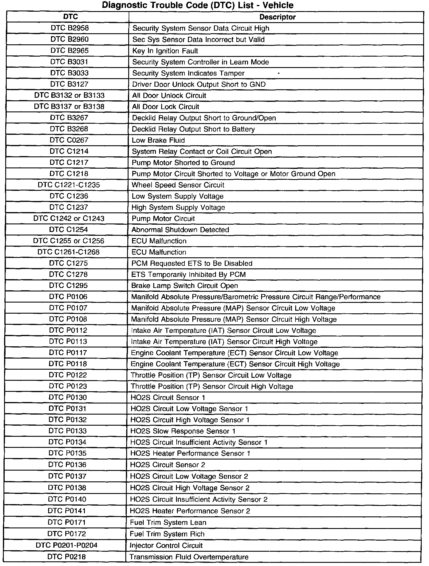 A L L Diagnostic Trouble Codes ( DTC )