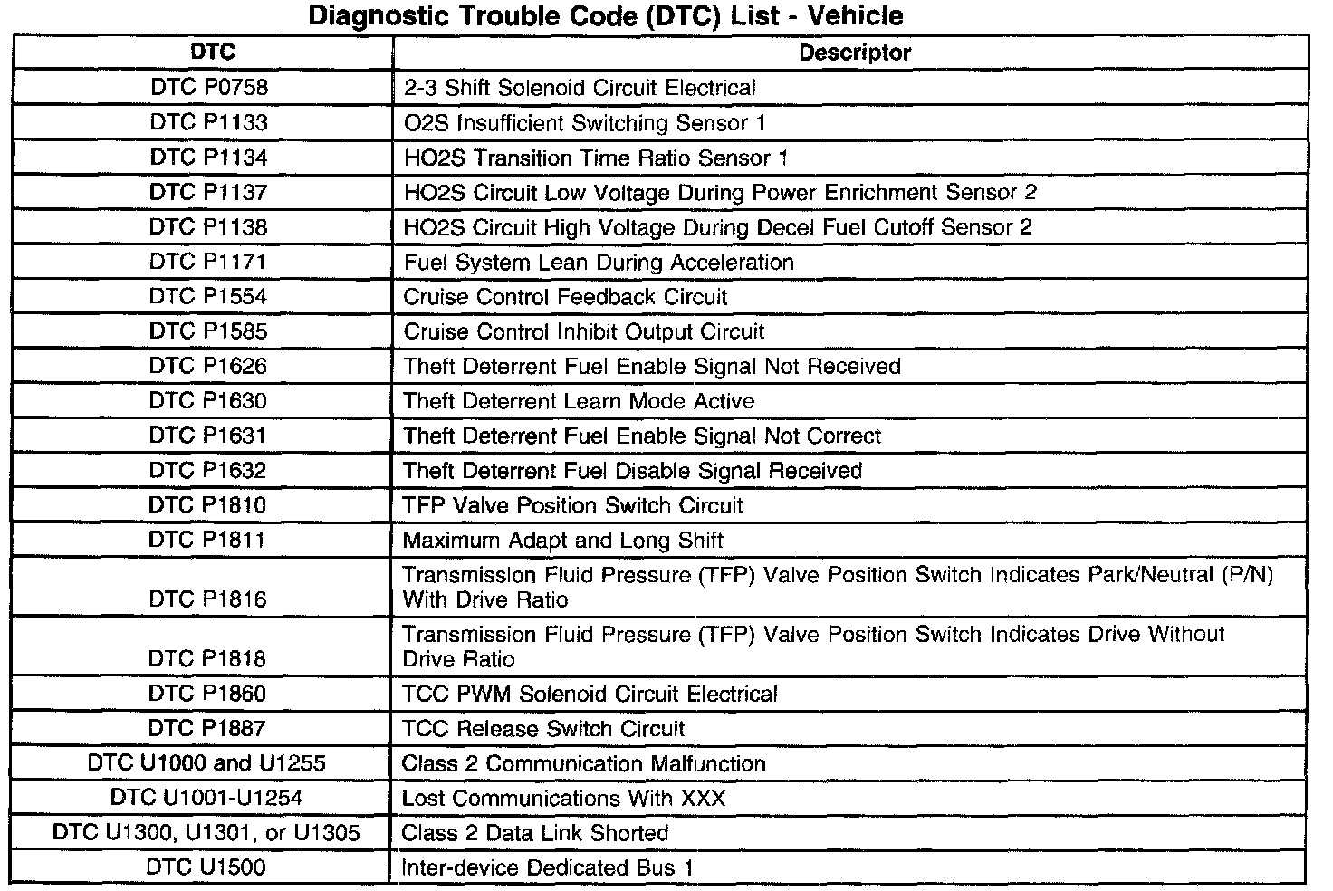 Diagnostic Trouble Code Descriptions