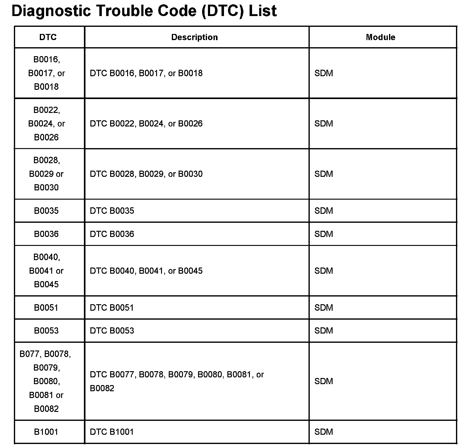 Diagnostic Trouble Code (DTC) List: