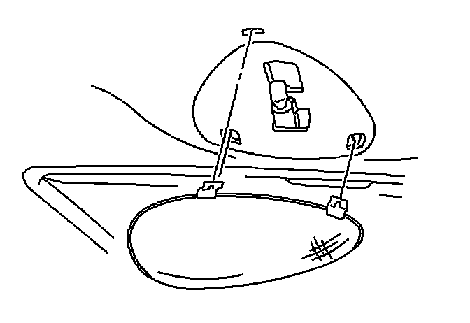 1. From the rear of the dome lamp lens, insert a flat-bladed tool (1) between the dome lamp lens and the headliner (2).