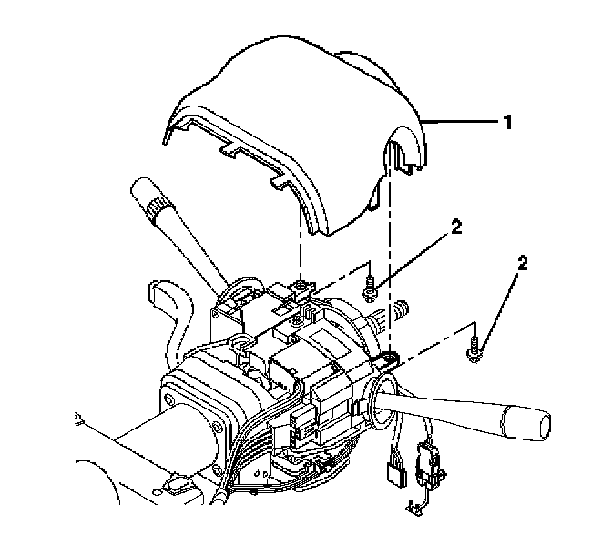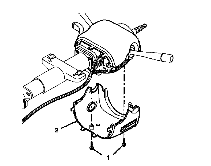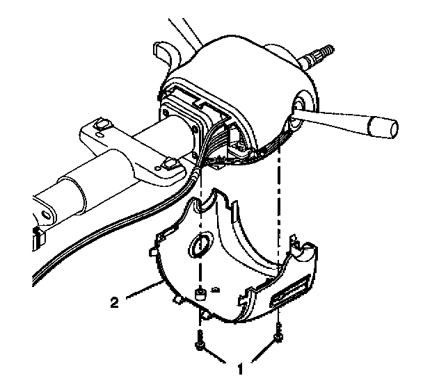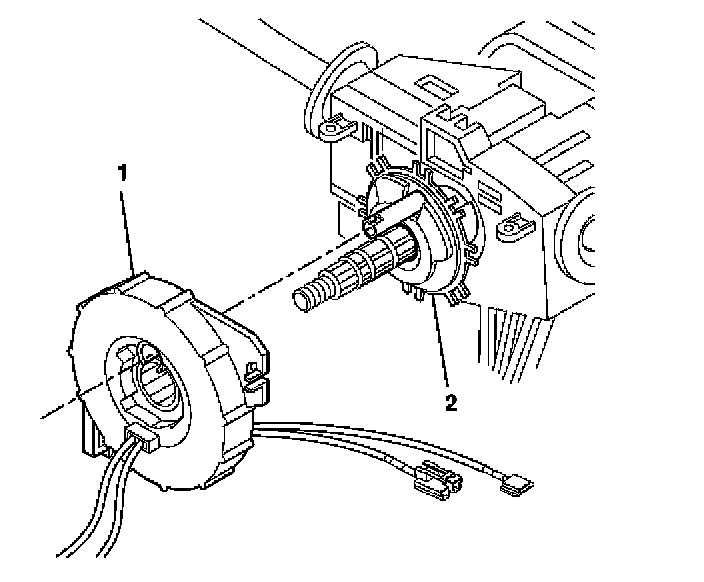 3. Align the SIR coil assembly (1) with the horn tower on the turn signal cancel cam assembly (2).