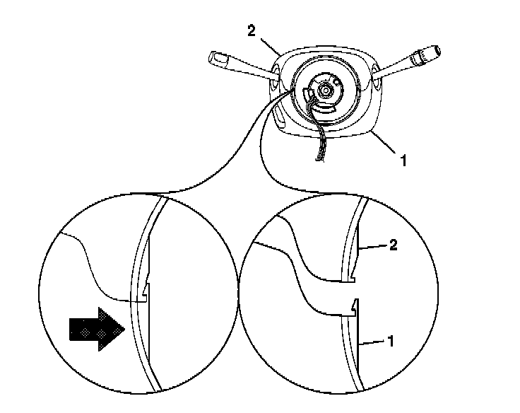 2. If centering is required, follow the instructions on the notice (1) of the coil assembly. Refer to Inflatable Restraint Steering Wheel Module Coil Centering in Steering Wheel and Column.