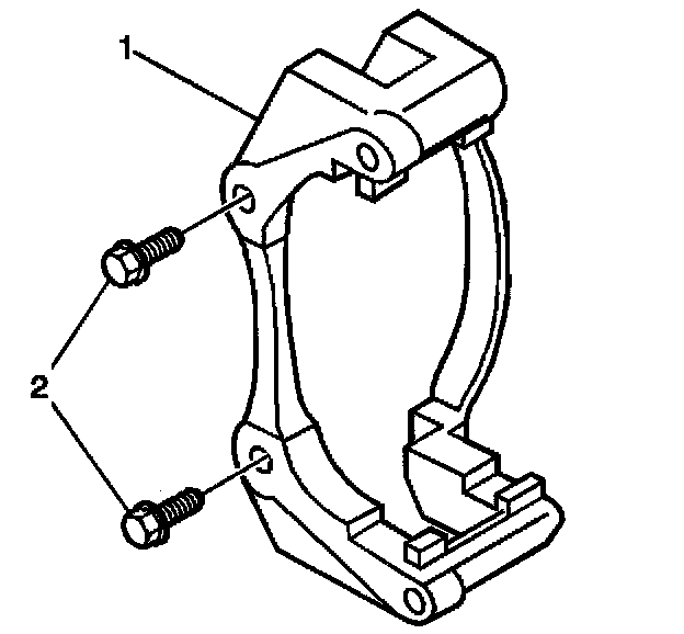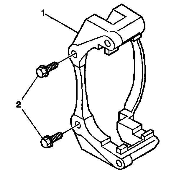 3. Install the caliper bracket (1) with the bracket bolts (2).