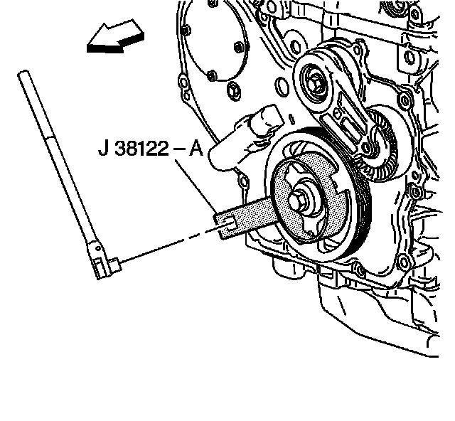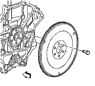 Remove the flywheel attaching bolt. Use the J 38122-A to prevent crankshaft rotation.